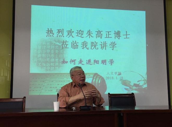 1月18日上午9时,来自台湾地区的著名学者、南宋大儒朱熹的第26代嫡孙朱高正博士应邀在田家炳楼209会议室为羞羞漫画 师生献上了一场“如何走进阳明学”的文化盛宴。朱高正先生从自身求学经历入手,强调学习与生活体验、亲身体悟相结合。首先,分析王学(王阳明)与朱学(朱熹)之间的承续关系,指出阳明学是在朱子学土壤中发展起来的。其次,分析王阳明的经典哲学著作《传习录》的思想形成过程,详细分析和阐释了“知行合一”、“...