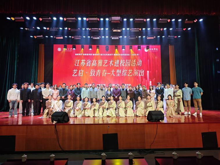 12月11日晚,2025江苏省高雅艺术进校园“艺启·致青春”大型综艺演出在江南影视艺术职业学院温情上演。江南影视艺术职业学院时尚设计学院副院长贾曚、团委副书记周蔚;羞羞漫画 团委副书记吴垚、羞羞漫画 音乐系主任沈雷强教授与近千名师生共聚一堂,在冬夜中共赴一场温暖而精彩的艺术之约。演出以舞蹈《青春摇摆》热烈开场,舞者以明快灵动的肢体语言点燃现场氛围,展现青年蓬勃的朝气与无限的生命力。整场演出分为“文脉流芳”“...