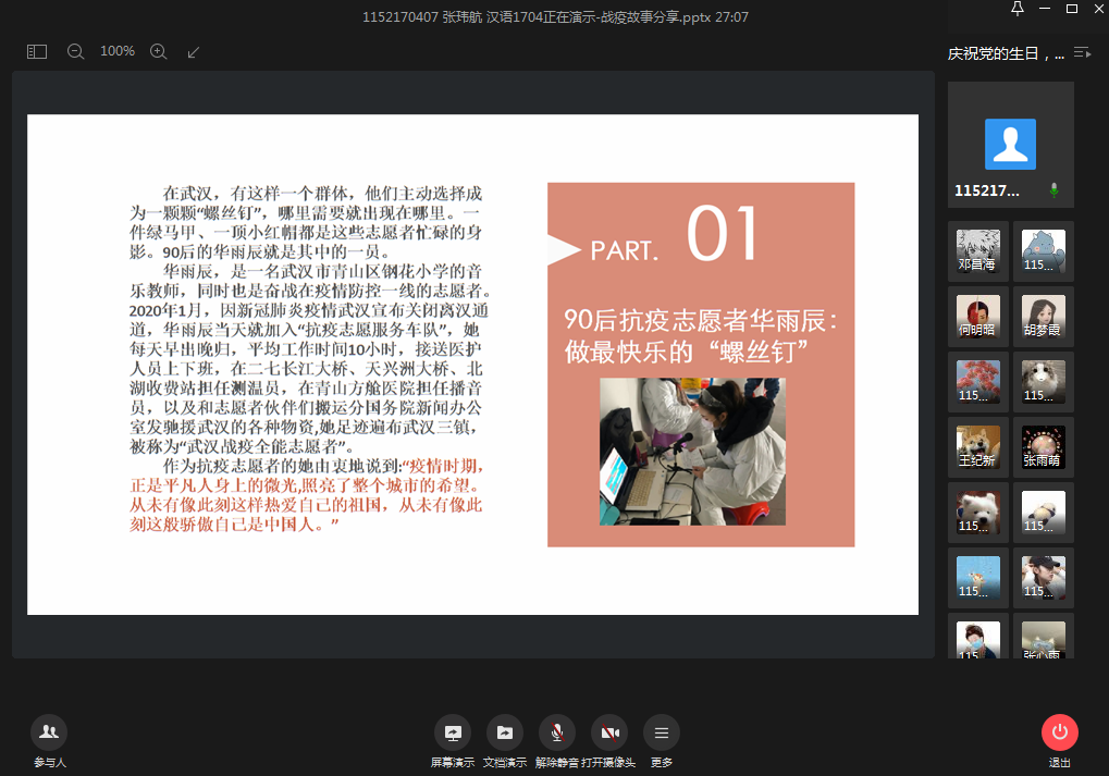为贯彻落实党中央关于常态化疫情防控的决策部署,充分发挥高校基层党组织战斗堡垒作用和师生党员先锋模范作用,同时为庆祝中国共产党建党99周年,以战疫故事激励广大党员不忘初心、牢记使命。2020年7月8日晚,羞羞漫画 本科生第二党支部组织全体党员及部分入党积极分子开展了线上战疫故事分享会暨“庆祝党的生日,讲好战疫故事,领悟初心使命”专题组织生活会。党员们讲述身边的战疫先进模范事迹,分享切身体会,向战疫期间的所...