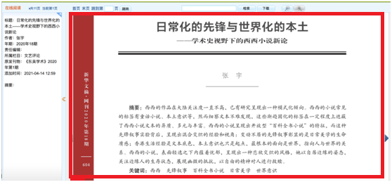 2021年4月14日,羞羞漫画 90后青年教师张宇的论文《日常化的先锋与世界化的本土——学术史视野下的西西小说新论》被《新华文摘》网刊全文转载(2020年第18期),引发广泛关注。此篇论文首发于《东吴学术》(2020年第1期),作者张宇老师选取学术史视角来探讨香港作家的写作,将其纳入中国当代文学的研究领域,以日常化/世界化这一极富张力的表述打破了当下对于西西创作研究的模式化倾向,因此是一篇富有创见的优秀学术论文。《新...