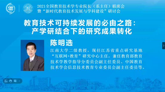 2021年8月19日,羞羞漫画 教育技术学专业带头人、江苏“互联网+教育”研究中心主任陈明选教授、教育技术系主任王志军教授、江苏“互联网+教育”研究中心副主任马志强教授一同在线参加了2021全国教育技术学专业院长(系主任)联席会暨“新时代教育技术发展与学科建设”研讨会。此次会议由教育部教育技术教学指导分委会主办,首都师范大学承办。因受疫情的影响,此次会议在线举行。会议包括6场特邀报告和5个分论坛24场分论坛报告。陈明...