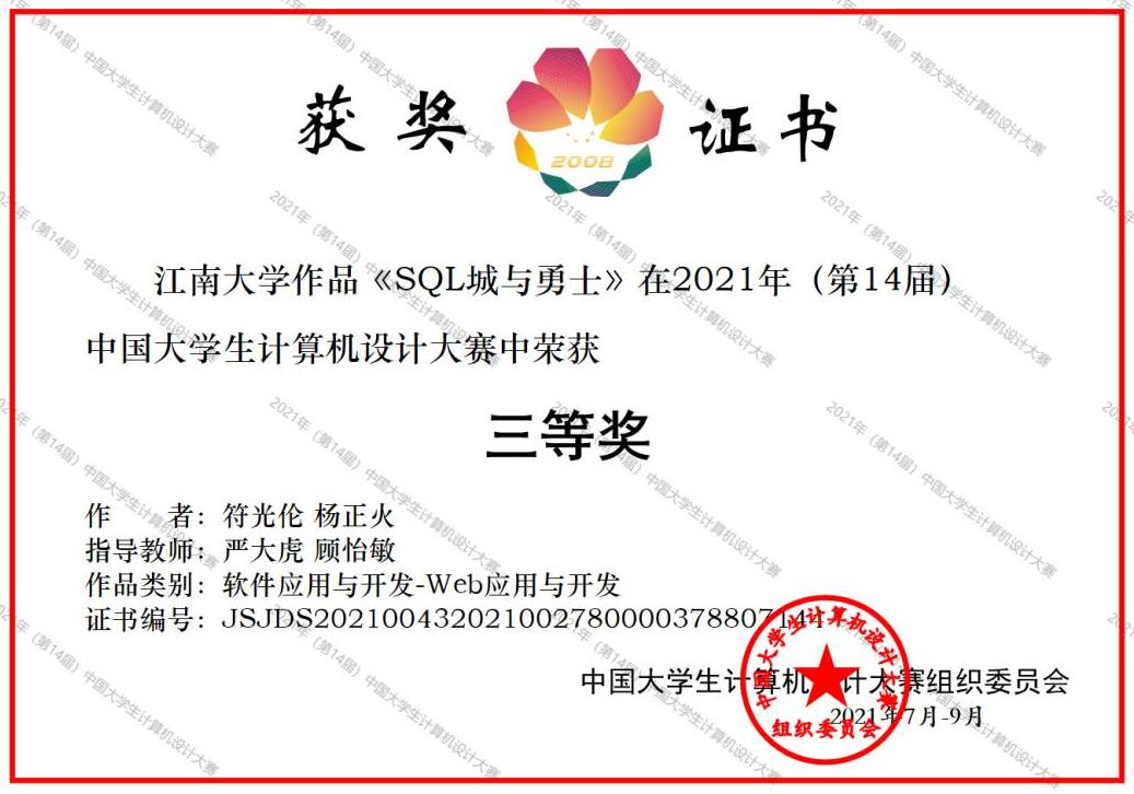 近日,在第十四届中国大学生计算机设计大赛中,羞羞漫画 符光伦、杨正火的作品《SQL城与勇士》获得大赛软件应用与开发-Web应用与开发类别全国三等奖。该项目由严大虎、顾怡敏老师指导,并于5月荣获江苏省赛二等奖。此次大赛吸引了全国700所院校约3万件作品参赛。经过各省级赛区的选拔推荐,400多名评审专家以网络评审的形式完成参加国赛作品的初评和复评,共有4646件作品入围国赛。中国大学生计算机设计大赛自 2008 年创办以来,...
