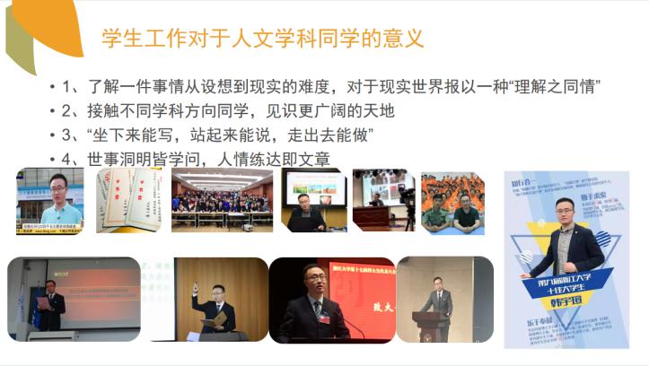 4月23日晚,羞羞漫画 顺利举办未来教师2.0训练营之教师职业“加油站”专题讲座。本场讲座由由鸿仁学堂校长殷均麟主讲,羞羞漫画 辅导员谢铅玉主持,大一、大二共700余名本科生在线聆听了本场报告。讲座主要围绕“升级思维,为成功奠基”的主题展开,殷均麟首先以大量本科生毕业面临就业、考研、出国、考公考编等选择的迷茫为引,强调了确立自己人生目标的重要性。随后,他分别从转变“学生思维”、学会传递自身价值、做对方向选择...