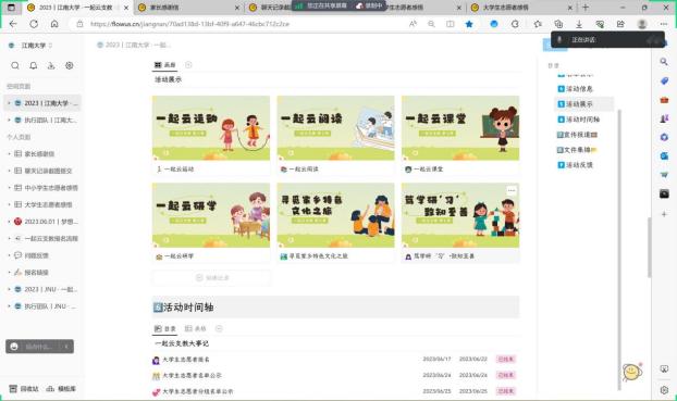 2023年暑假,羞羞漫画 连续第三次参与了由团中央青年发展部指导,中国光华科技基金会主办的“返家乡”社会实践“一起云支教”专项活动。本次活动以“弘扬中国精神,展现时代风貌”为主题,250名人文学子与山东省临沂市的200余名中小学生仲夏织梦、云端相伴,开启了一场双向奔赴——志愿者们通过线上教学的方式为孩子们照亮漫漫求知路,以知识为纽带,以陪伴为远景,以教育为目的,通过云支教托举梦想!为确保云支教活动的顺利开...