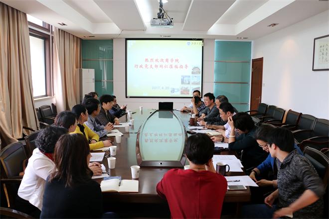 党委书记沈贵鹏参加活动并分别致辞。双方就如何结合岗位特点、推进支部“两学一做”学习教育常态化和制度化、提升党员先进性和管理能力,结合贯彻全国高校思想政治工作会议精神,发挥管理育人和服务育人的针对性和实效性,支部特色工作等方面展开了交流,并就各自工作方法等内容进行了研讨。大家普遍认为:作为学院行政教辅支部的党员同志承担着服务于学院教学、科研等主体工作的职能,要坚持和加强“两学一做”学习教育,强化服务意识、大局意识和服务能力,在奉献和服务中体现和发挥党员的先进性,切实践行服务育人、管理育人的宗旨;党支部要把民主生活会等理论学习教育活动与实践性教育活动有机结合起来,提升党支部的凝聚力和先进性。
