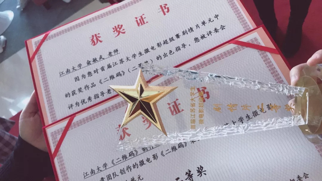 汉语16级李成蹊同学担任导演、编剧,北美学院金融15级钟伊伦同学领衔主演的微电影《二维码》获得评委一致好评,腾讯视频上线首日观看人数突破8000,并荣获此次大赛剧情片单元二等奖。