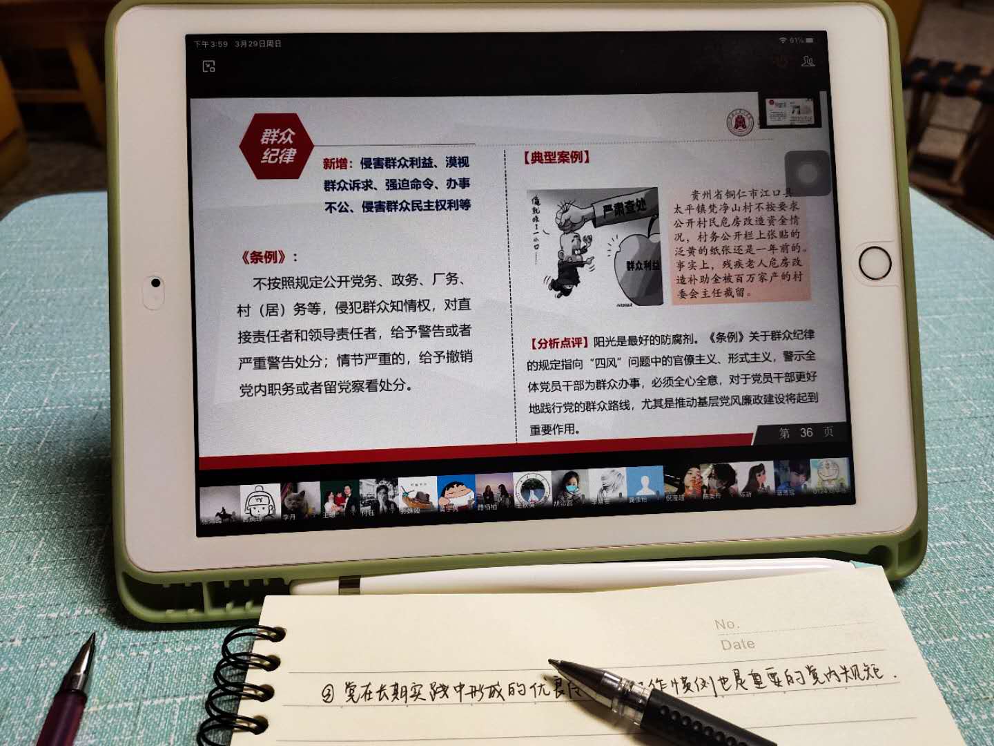 一大早娄老师调试好设备,经过试播,准时开启了线上党课。他从党的十九大报告展开,强调了加强党的执政能力建设和先进性、纯洁性建设的重要性,并介绍了党的建设的历史经验。通过“墨子号”等具体例子,展示了在中国共产党的领导下新中国取得的一系列举世瞩目的成就。接着从政治建设、思想建设、组织建设、作风建设、纪律建设、制度建设、反腐败斗争建设到权力监督,为同学们讲解了新时代加强党的先进性建设的八大措施。娄老师指出共产党员应牢记习近平总书记在“不忘初心、牢记使命”主题教育工作会议讲话中提出的“守初心、担使命、找差距、抓落实”的总要求,不断加强自身建设,学习新本领,做到更好地为人民服务。