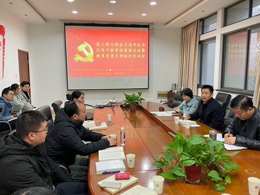 戴月波认真听取了各位党员教师的发言,并对本次支部组织生活会进行了总结,肯定了支部理解习近平总书记重要教育论述的专业视角,勉励支部全体教师不忘初心,坚守立德树人的教育使命,牢记习近平总书记关于教育的九个坚持,将自身发展与学科发展、学校发展紧密联系,积极开展各项工作,在十四五期间有更大的作为。同时,戴月波强调,习近平总书记的教育重要论述为新时代教育改革的发展提供了根本遵循。教师们要在认真学习、全面贯彻习近平总书记教育重要论述的基础上,将习近平教育重要思想与课程进行深层次的融合,把立德树人融入思想道德、文化知识、社会实践教育各环节,在培养学生认知能力的同时,亦要关注其受挫能力、协作能力、领导力等非认知能力的培养。