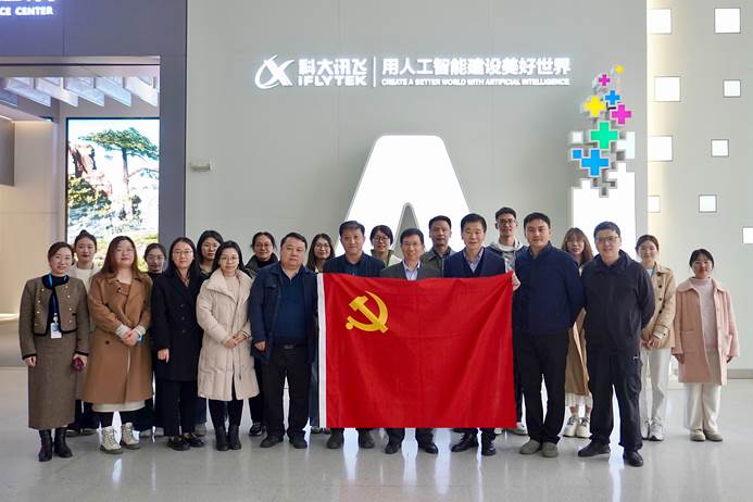在科大讯飞总部,党员师生与科大讯飞教育技术研究院一行进行座谈交流。双方就学习贯彻两会精神,深化教育数字化战略部署展开了讨论,围绕“人工智能时代高校人才培养转型”“产学研协同育人模式”等议题展开热烈讨论。全体党员参观了人工智能展厅、讯飞人工智能产品展示,并直观感受科大讯飞在语音识别、教育辅助、智慧医疗和讯飞星火大模型人工智能领域的技术成果。