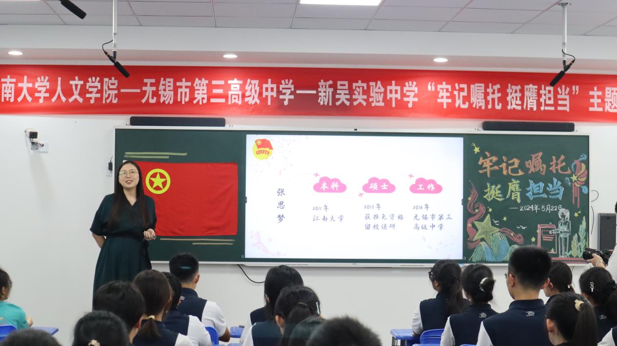 青年马克思主义者培养工程第六届培训班学员赴无锡市第三高级中学参加“牢记嘱托、挺膺担当”主题团日活动,与无锡市第三高级中学、新吴实验中学的60余名团员代表们共同学习习近平总书记五四青年节对全国广大青年寄语精神,畅谈《习近平与大学生朋友们》读书心得,分享成长经历和感悟。