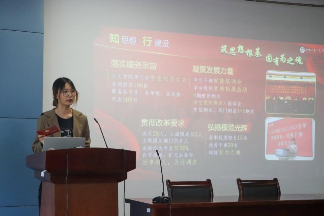 学生会、研究生会、团务中心、新媒体工作室、学习发展中心、学生事务中心、党务中心、心语心悦工作室八个学生组织负责人结合2023-2024学年工作情况展开述职。
