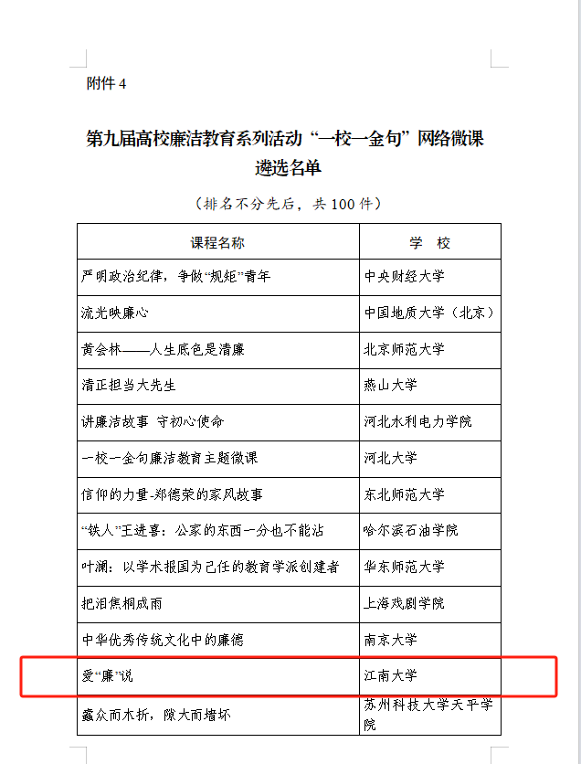 党委联合制作的视频《爱“廉”说》入选“一校一金句”网络微课全国百件。