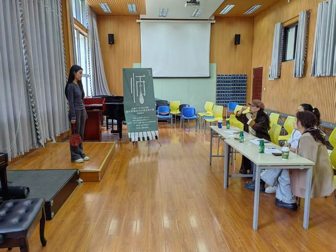 大赛前夕,2022级所有学生以饱满的热情投入备赛中,琴房、舞蹈教室、多媒体教室等处处涌动着精益求精的学术氛围,展现新时代师范生“厚积薄发、追求卓越”的精神风貌。比赛中,同学们以“三尺讲台育桃李,一方舞台展风华”的昂扬姿态,展现了一场艺术性、教育性与创新性于一体的高水准赛事。在合唱指挥组比赛中,同学们对声部平衡的精准把控,生动展现出作品的艺术魅力和情感内涵;在自弹自唱组比赛中,同学们将即兴伴奏与声乐表现有机融合,展现出扎实的专业功底;在微课组比赛中,同学们灵活运用多媒体技术,紧扣教学重难点,将文本知识转化为生动直观的课堂呈现,体现出“短、精、趣”的微课特色;另外在分选组中,同学们根据自身特长选择不同组别来展示专业技能,比赛精彩纷呈。