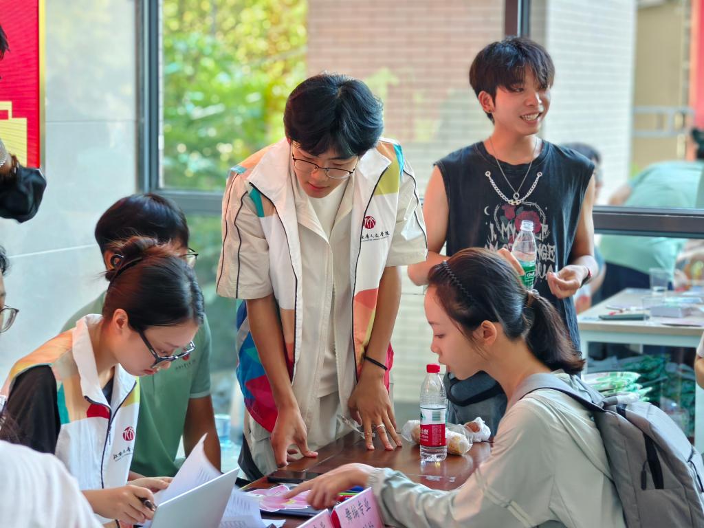 于方寸之间,依托专业特色设计专属礼物,这份礼物,是人文精神的传递,更是大学旅程的温暖序章。“书香盈袖”活动体验区,执扇绘心,落墨传情”,新生们亲手参与漆扇制作、团扇绘制与书法创作,在一笔一画、一染一绘之间,感受传统文化的魅力与人文底蕴的哲思。甲骨文解谜游戏,以甲骨为舟,载千年文脉;与“江南印记”透卡合影,用脚步丈量校园,以心灵感知人文。在时光邮筒中给未来的自己寄一封信,开启大学新旅程,一笔一画,写下的是此刻的梦想与期待,封存的是青春最珍贵的记忆。
