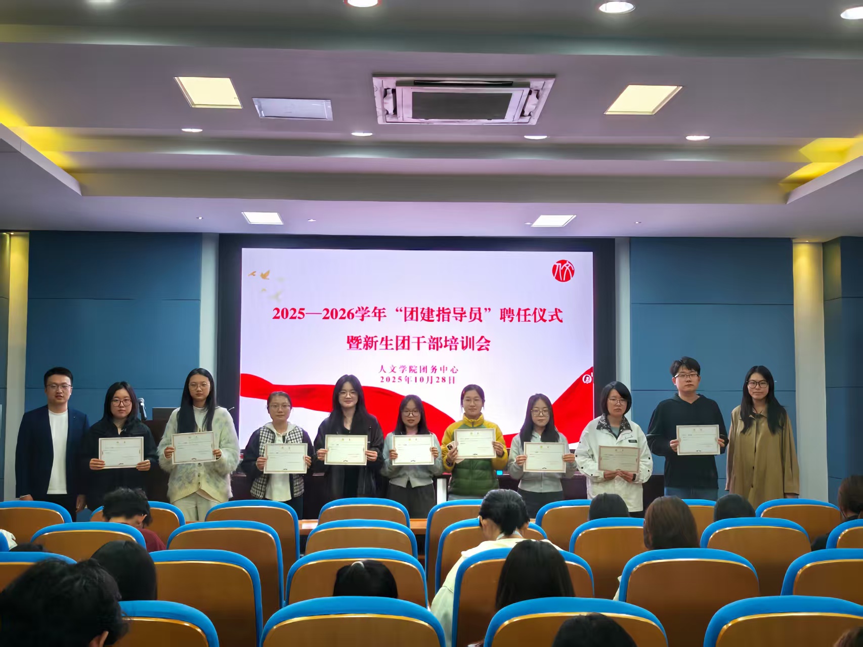 2025-2026学年团建指导员聘任名单》,随后,邓昌海与刘畅依次为团建指导员颁发聘书并合影留念。