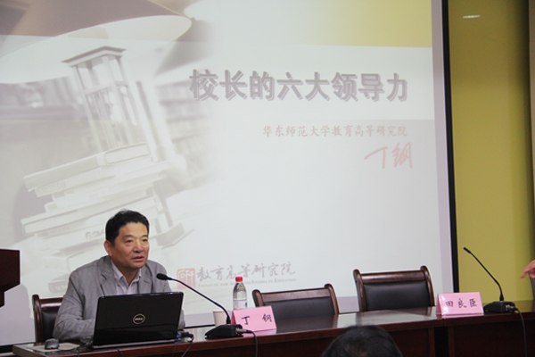 2012年10月27日上午,中国教育学会副会长、国务院学位委员会学科评议组召集人、华东师范大学“终身教授”丁钢博士在田家炳楼209室为来自全省参加“江苏省高中优质发展与教育家办学”专题培训班的高中校长、无锡市区教育局有关人员及学院部分师生等近200人作了一场关于“校长的六大领导力”的专题报告。报告会由学院副院长田良臣教授主持。
