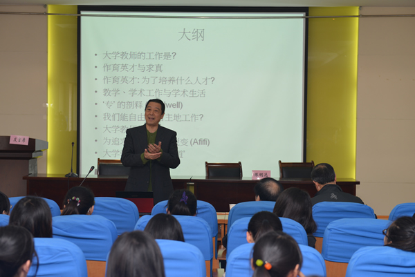 本次活动特别邀请了著名学者卢乃桂教授给我校师生作题为“国际视野内的教师发展”的学术报告。报告中,卢教授梳理了国内外教师发展方面的研究,指出大学中的“学术”内涵不仅是指学科专业的科学研究,还包括探究的学术、整合的学术、应用知识的学术和教学学术。他强调,学术不仅意味着探究知识、整合知识和应用知识,而且意味着传播知识,这就是“教学的学术”,教学支撑着学术,没有教学的支撑,学术的发展将难以为继。卢教授还结合自己的工作和教学经历,向广大师生分享了作为大学教师应该如何塑造自身形象、如何确立发展定位、如何实现良好的师生互动等方面的体会。在互动环节,我校多位教师和研究生提出了自己在作研究和职业发展中的困惑,卢教授均一一作答。