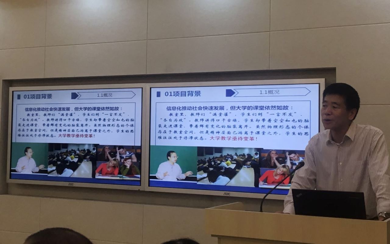 课题负责人陈明选教授首先从项目背景、项目研究问题与目标、项目成果和实践案例等方面对课题的实施情况进行汇报,项目经过两年实施,取得了四方面研究成果与应用成效:(1)构建了着重理解的混合式教学改革理论体系,探索了“翻转课堂”、“着重理解的多元评价”等教学设计方法,发表了系列教学改革论文;(2)结合教改试点专业-羞羞漫画