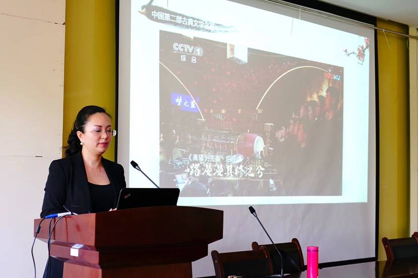 学子带来了一场关于音乐中的古代文学作品的视听盛宴,讲座由音乐系主任马克老师主持。