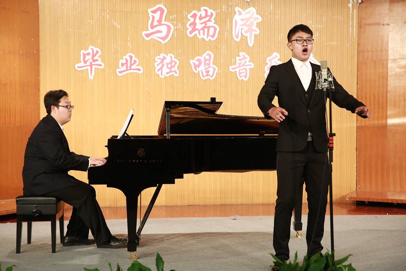 音乐系学生的朝气与风采。作为14级的毕业生,马瑞泽用歌声感恩母校,答谢老师,赢得了观众阵阵掌声。