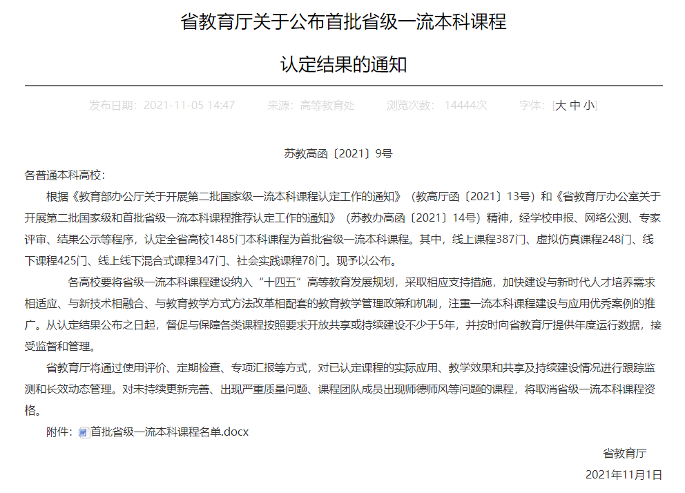 日前,江苏省教育厅组织了首批省级一流本科课程推荐认定工作,羞羞漫画