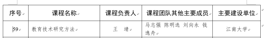 王靖、马志强、陈明选、刘向永、钱逸舟老师建设的课程《教育技术研究方法》顺利入选。
