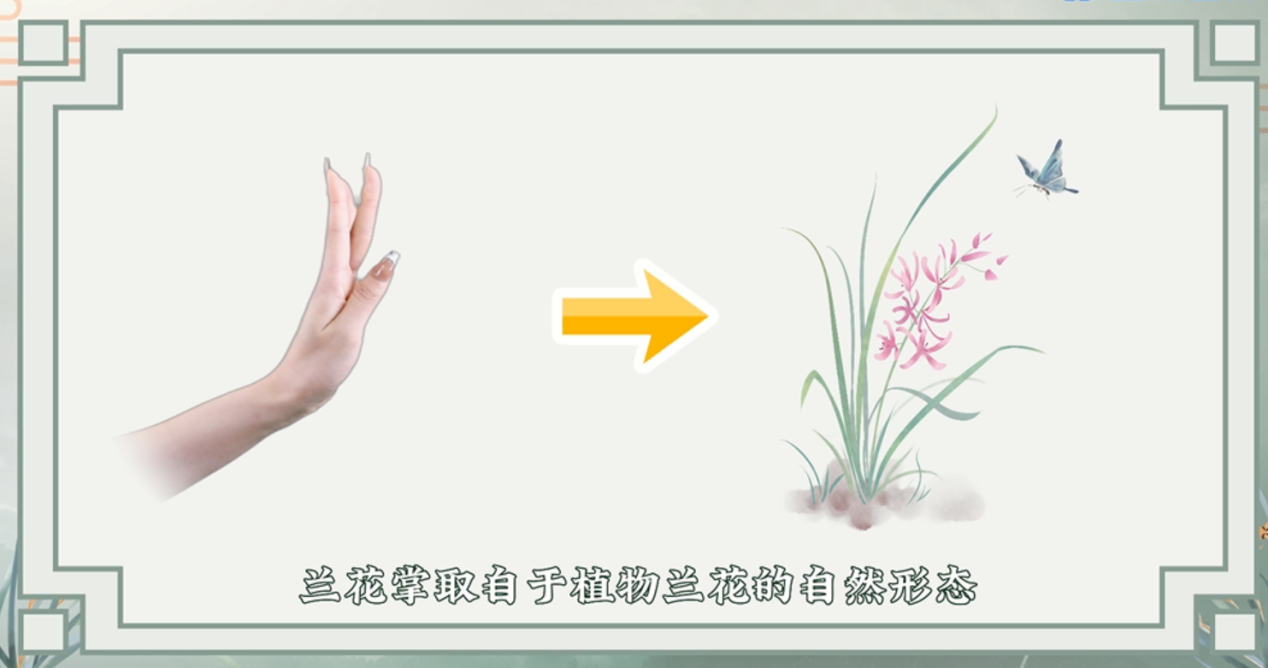 微课作品《手舞意象之兰花掌》是江苏省高校美育精品课程(公共艺术类)《舞蹈美育与综合素质教育》的代表性建设成果。在作品的开发与设计思路上,陈妍老师紧抓“以学生为中心”的课程建设思路,设计“小兰花”这一作为屏幕前学习者身份的教学代理,通过知识讲授过程中不断发问的方式,展现学生对兰花掌基础知识由浅入深的学习情况。在对兰花掌的创新性发展与设计上,教师在作品中为学生提供了一种思路,以此引导学生探索动作发展方式的多种可能性。另外,微课作品《手舞意象之兰花掌》在内容与页面设计上紧扣《舞蹈美育与综合素质教育》关于“舞承经典,立德润心”的课程定位,将“兰花掌”与中国兰花文化、中国古典诗词文化相融合,增强学习者对中华优秀传统文化的情感认同,深刻理解动作中蕴含着的清雅、高洁之美,陶冶高尚的道德情操。在页面设计方面,考虑到对学生审美素养的培养,作品在设计上格外注重视觉感受。以“中国风”为基调,结合中式风格的外框展现国风韵味,配色上选定兰叶作为主色调,花瓣色作为辅色调,让学生在学习中达到舞蹈审美素养与人文修养的双向提升。