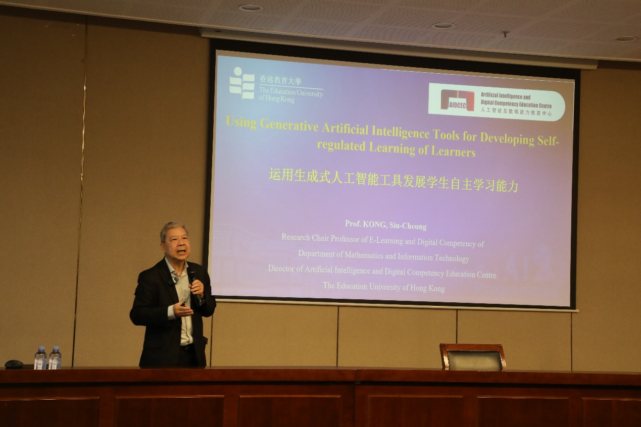 随后,江绍祥在“运用生成式人工智能工具发展学生自主学习能力”的主题中,提出了一个以人为本的自主学习发展框架,并通过具体的课程实例展示了如何将生成式人工智能工具融入教学过程,以提升学生的学习效果。江绍祥提倡在教育过程中加入更多有关人工智能素养的内容,包括学习神经网络、机器学习等基本原理。他相信,通过对这些技术的理解,学生们不仅能更好地适应未来的科技环境,还能在与人工智能的合作中找到自己的定位。