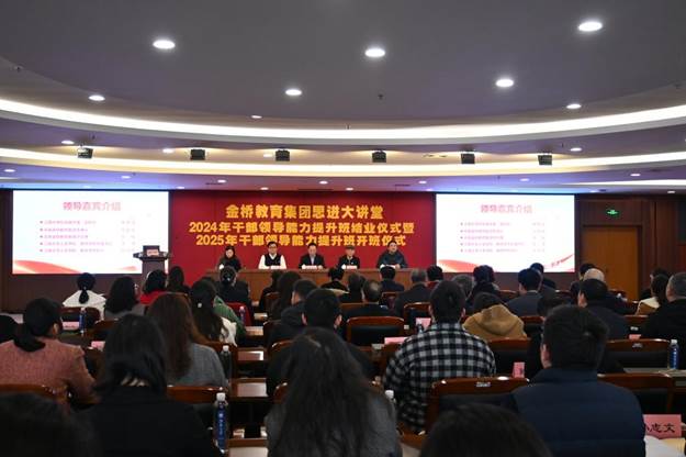 随后,与会领导为2024年能力提升班学员颁发结业证书。金桥教育集团初中教育管理部部长高小芳向全体参会成员分享培训感悟。她表示,回首第一期的培训,内容丰富、形式多样,涵盖了教育领域的多个层面的关键议题,为参与者提供了思维提升和教育管理方面的专业建议和指导。同时伴随着第二期“思进”大讲堂开班,希望大家能保持学习热情和创新精神,为金桥教育的可持续高质量发展贡献力量。