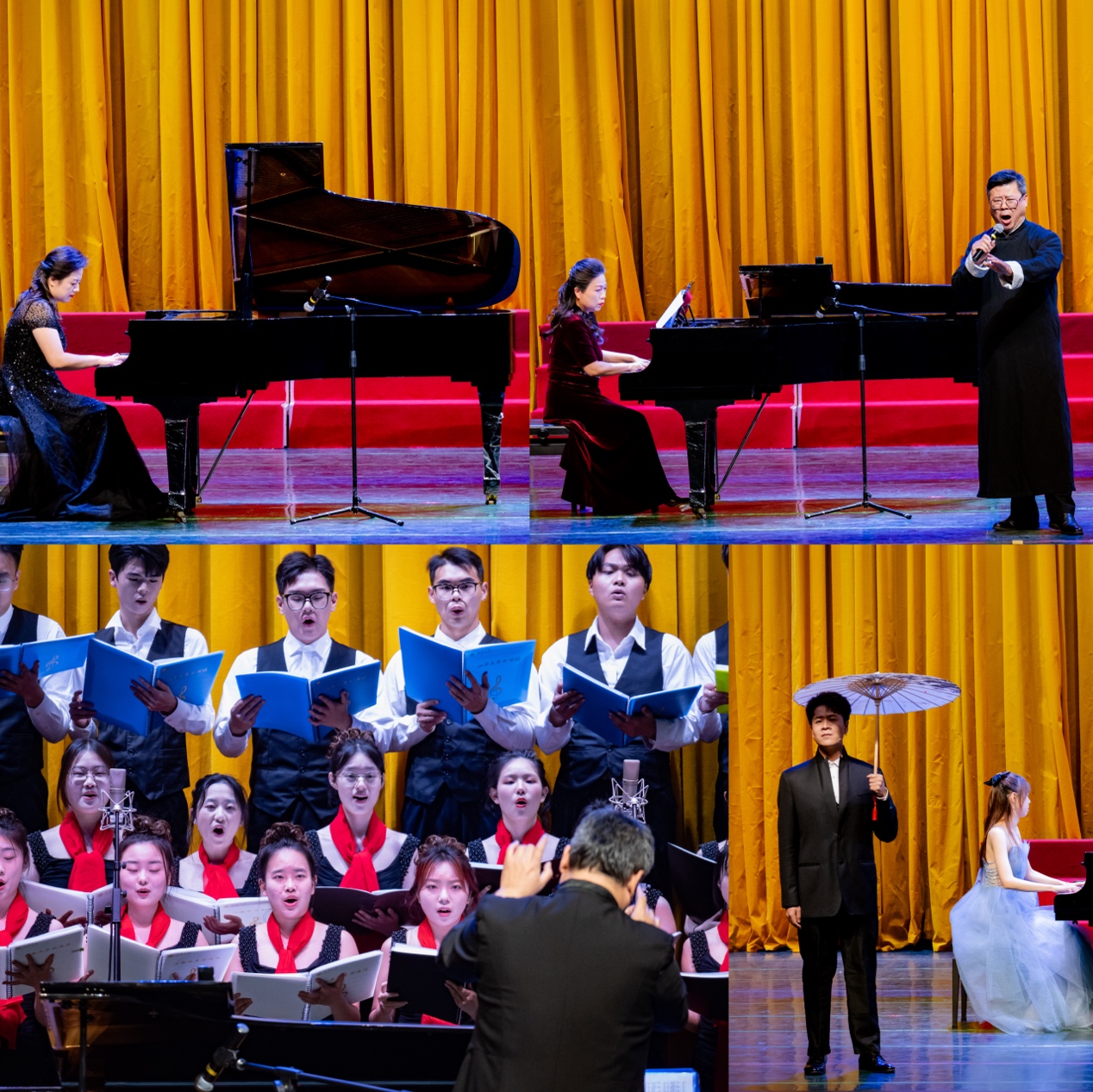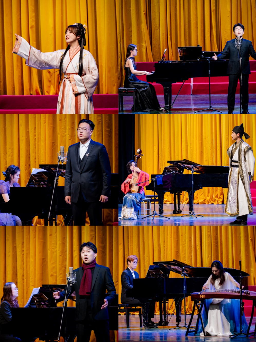音乐系的教师和同学们用“朗诵+声乐”、配乐诗朗诵、独唱、大合唱和钢琴独奏等方式,为现场观众带来了一场精彩的诗与音乐之旅。在演奏作品的选择上,本次音乐会根据表演形式分为中国古诗词与声乐、中国古诗词与器乐、中国现代诗歌与声乐以及中国现代诗歌与钢琴,表现了我国不同时期诗歌的文化对艺术精神的表达形式与内涵。