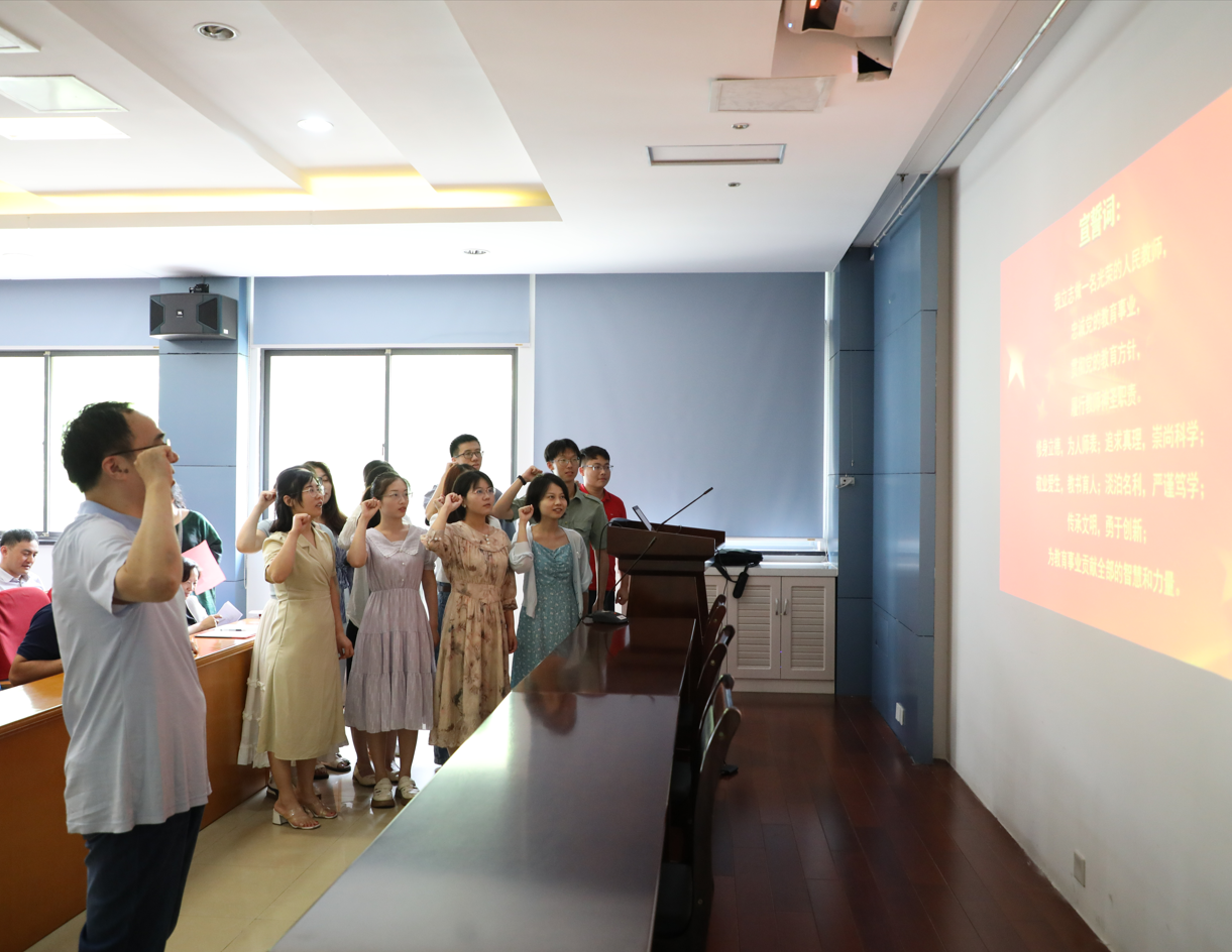 大家庭表示感谢并表达了向老教师学习、努力实践教书育人理想的愿望。学院党委委员杨晖教授带领新教师进行入职宣誓。庄重而热烈的仪式让所有与会教师都深受感动与鼓舞,在羞羞漫画