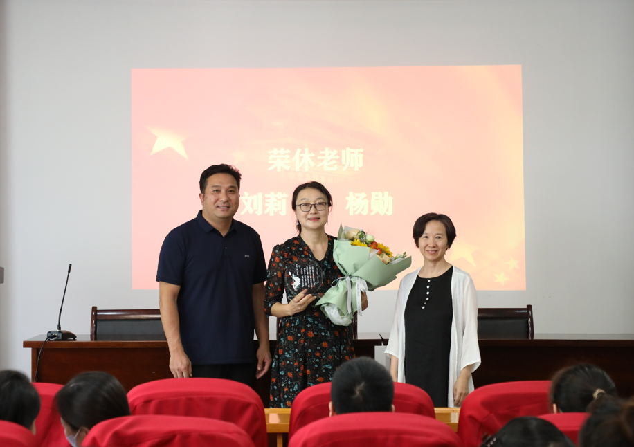 全体教职工的掌声中完成了新老教师“薪火相传 梦想延续”人文教育精神的传递。