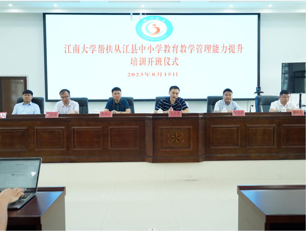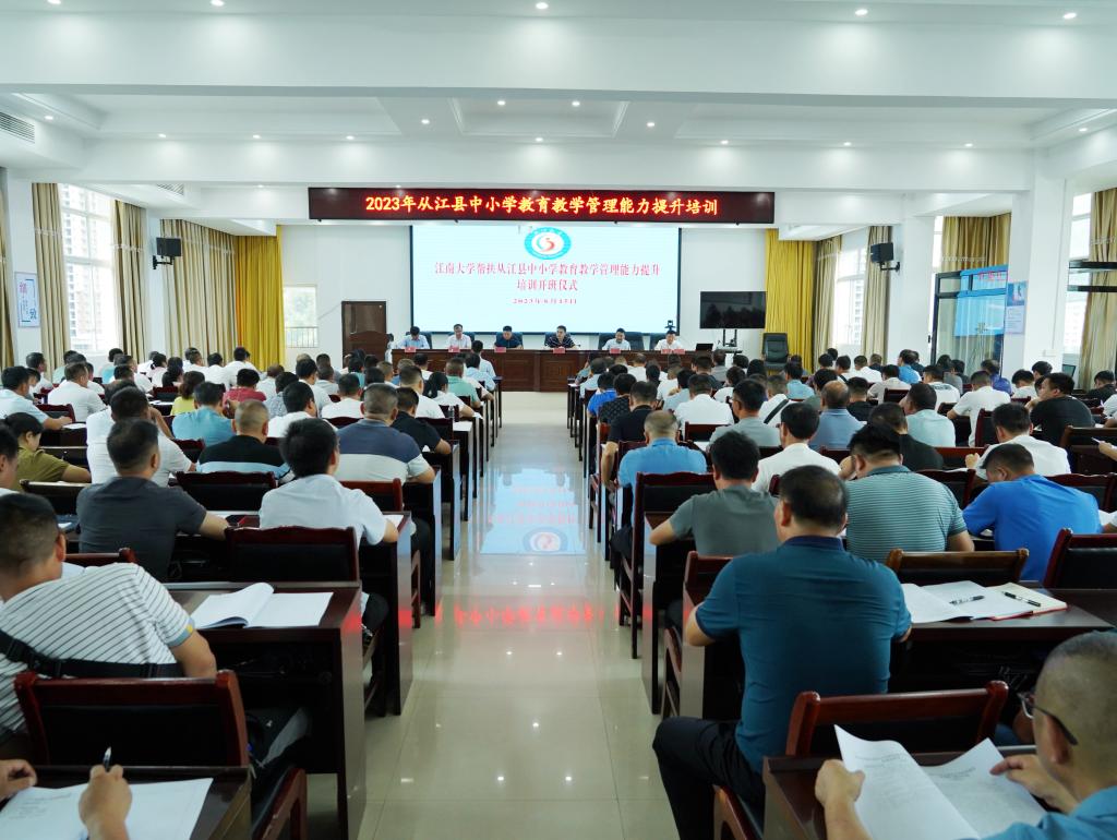李艳博士以及无锡市尚贤融创小学王佳副校长组成的“送培”专家团队,赴从江县开展为期三天的“从江县中小学教师教学管理能力提升培训”活动。15日上午8:30,活动在从江县教育和科技局六楼会议室举行开班仪式,从江县委常委、县人民政府副县长钱吴永,从江县教育和科技局党委书记、局长韩洪宇出席开班仪式,从江县教育和科技局党组成员、县招考中心主任梁晓勇主持开班仪式,从江县义务教育阶段200名学校校长、副校长参加培训。