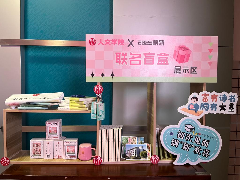 X2023萌新”联名盲盒,包含定制卡套、手绘团扇、经典书籍、系主任手写信、手机支架、杯子、字帖领书卷等等。拆开新生“盲盒”,解锁大学新生活。现场互动环节,精心准备“识甲骨文 换迎新礼”“留下大学第一张照片”等丰富多彩的活动。迎新老师和志愿者们为“小萌新”办理报到、答疑解惑、温馨提示……,报到现场有条不紊,井然有序,热闹非凡。