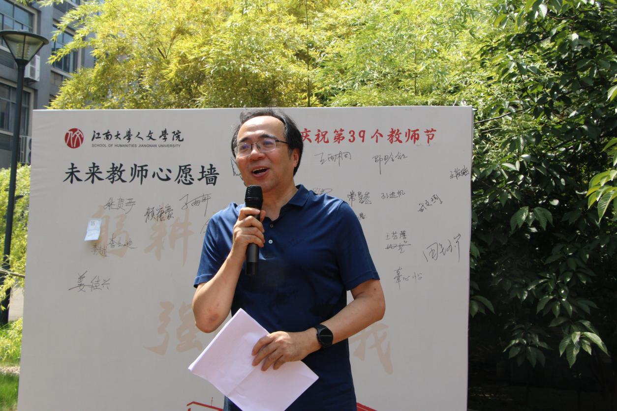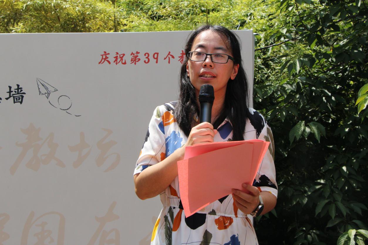 副院长马志强致辞,首先他向全院教师、从事教育工作的广大校友以及在读师范生们送上节日的问候和祝福。他希望,青年师范生要做学生为学、为事、为人的示范;要珍惜青春年华,锤炼传道、受业、解惑的本领,按照“四有”好老师的标准严格要求自己,把“学高为师 身正为范”的信念融入自身的实际行动,成为担当民族复兴大任的“明日良师”。紧接着,杨晖教授与学生代表共读论语,以师生互动的方式品味、回顾经典,一呼一应之间重现了孔子与学生坐而论道的场景。师生互动之后,新生代表们向孔子像敬献鲜花,真诚地写下自己的入学誓言并郑重签上自己的姓名。