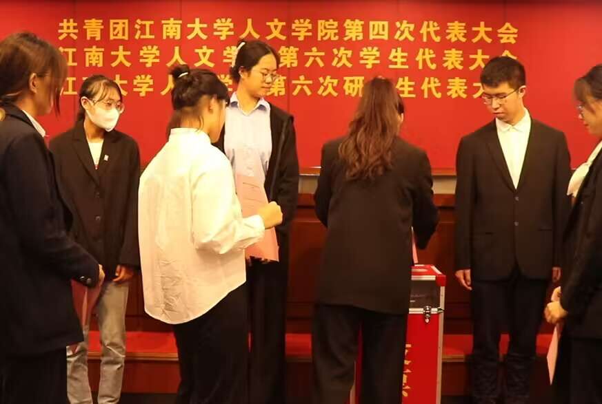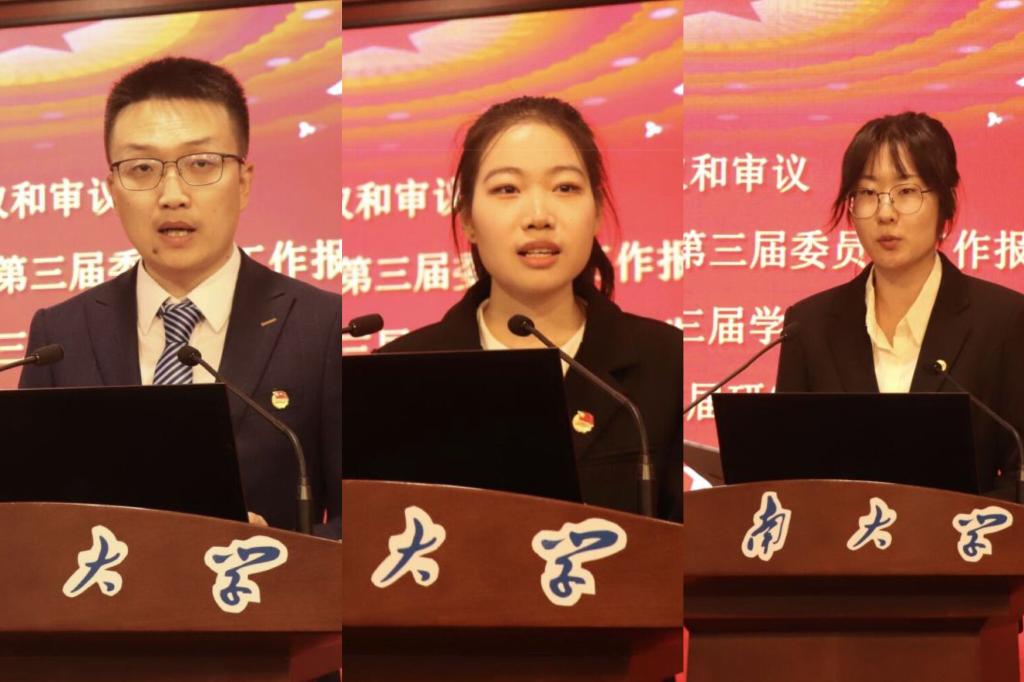 学生会工作发展新征程》的工作报告,林琳代表第十三届研究生会向大会作了题为《以人文之光,共筑江南雅韵》的工作报告。他们分别回顾总结了过去一段时间学院分团委、学生会和研究生会的工作成绩和经验,并提出了未来的工作目标和规划。
