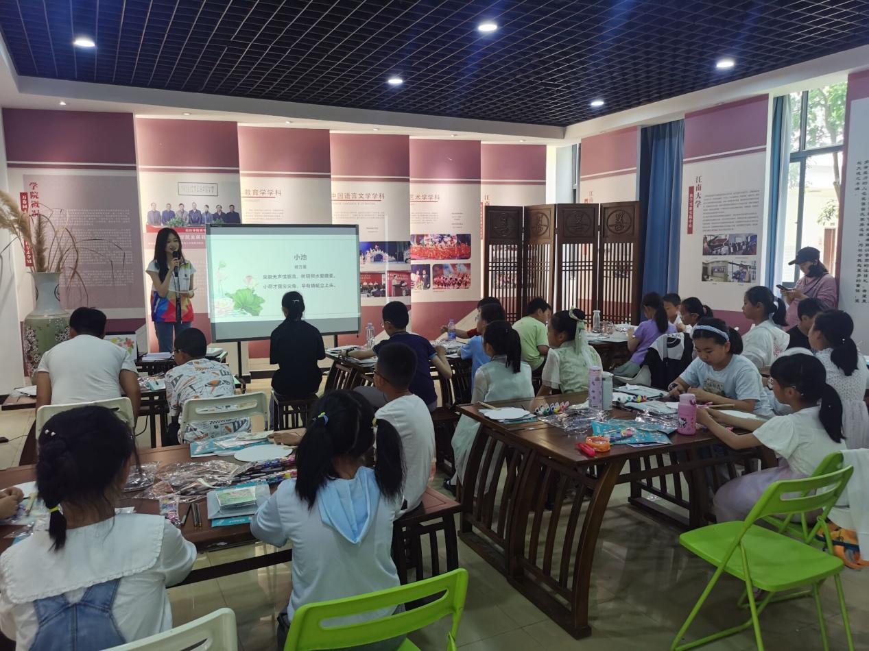 “游学江南”活动第3期顺利举行,本次活动除教职工子女外,首次向社区教育党建联盟合作单位信成花园社区开放,活动吸引了校内外20余名小学生参加。中文本科生第二党支部依托专业特色,扎实推进“我为师生办实事”,带领小学生于游学中吟诗,共赏夏日之美。本次活动由羞羞漫画