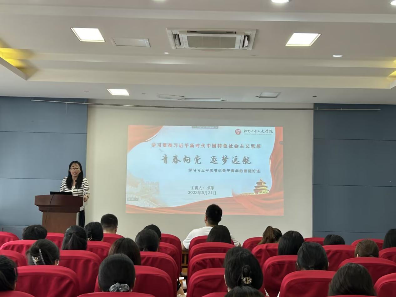 党委副书记、副院长李萍以《青春向党,逐梦远航》为题,为毕业生党员讲授毕业前最后一堂党课,教育引导毕业生党员以习近平新时代中国特色社会主义思想为指导,肩负起使命担当,努力成长为堪当民族复兴重任的时代新人,并对毕业生党员提出三点希望:一是坚定理想信念,不忘入党初心。以高度的历史责任感和奉献精神,胸怀家国天下,找准方向、锤炼本领,肩负起青年党员的使命担当。二是坚持勤学实干,敢于担当作为。在学思践悟中激发青春之力。三是坚守廉洁底线,永葆党员本色。加强党性修养,培养高尚的道德情操,始终做到自重、自省、自警、自励,充分发挥出青年党员的先锋模范作用。