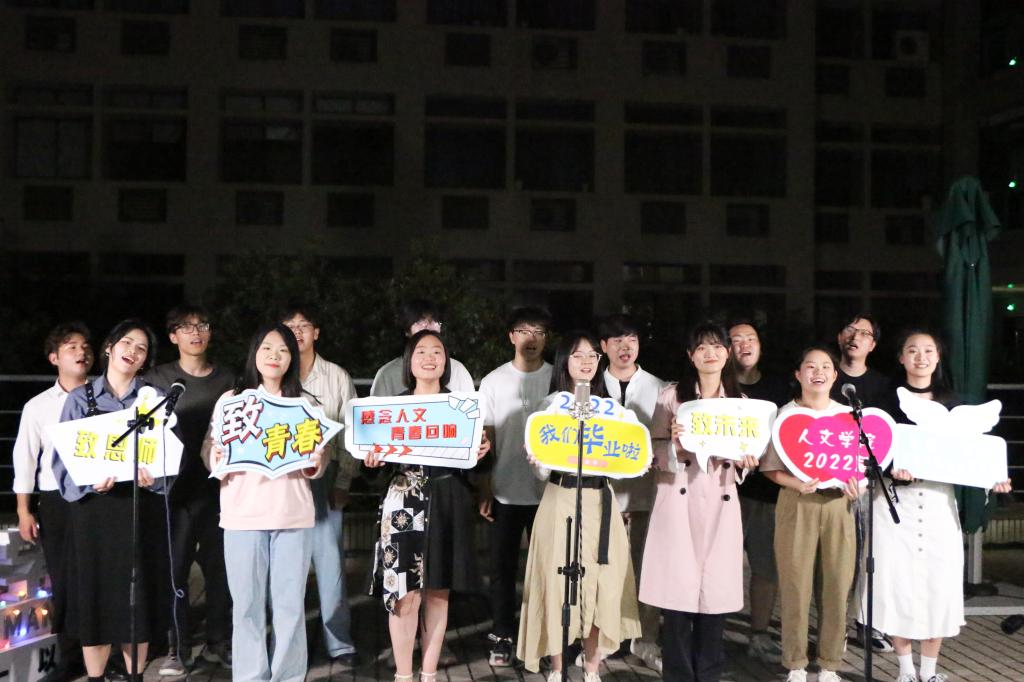 又一轮抽奖环节后,王永奇、杜家伟同学合作演唱《理想》,未来就在前方,雄厚的嗓音给人以前进的勇气和力量;董北辰、杜家伟同学带来歌曲《盛夏》,岁月流转,时光不再,但一起走过的夏天永远停留在记忆的深处;陈思远同学给观众带来《你来了》的精彩演出,山海浩瀚,是壮丽雄伟的情怀;何阳典、罗淑文、许娜同学合作带来三重唱《路过人间》,用歌声表达了内心的不舍与期盼。最后,2018级音乐学(师范)在校学生共同演唱《星辰大海》,星辰启航,笃行逐梦,未来如大海般浩瀚璀璨。至此,毕业晚会圆满结束。