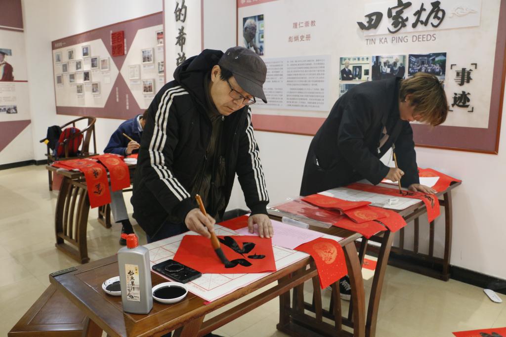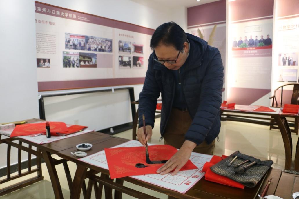 在田家炳先生事迹陈列厅举办“送春联写福字 金洒红宣迎新春”新年特别活动。无锡市书法家协会会员、无锡市私营个体经济协会理事任理培先生和校党委宣传部胡奕老师以及羞羞漫画