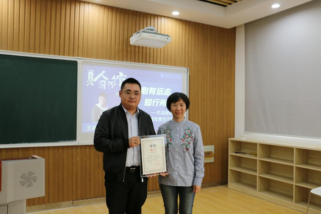 党委书记姚剑英为王德伟颁发了学院“青年成长导师”聘书。