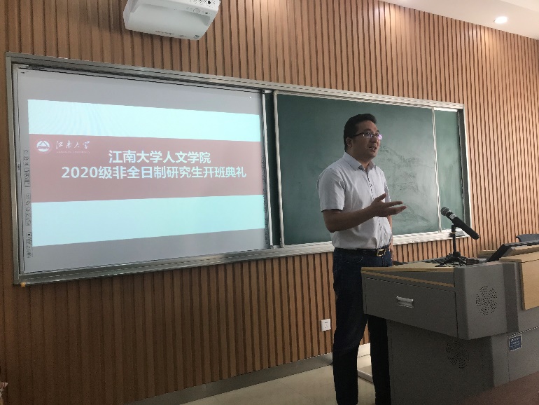 接下来,研究生导师代表,教育系主任伍红林教授致辞,他提出了非全日制研究生攻读学位所面临的挑战,并鼓励大家一鼓作气,充分利用这段宝贵的学习经历创造人生的辉煌。
