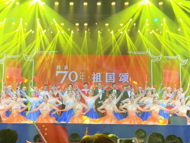 师生倾注了3个月的时间,从构思、编排、训练到彩排、演出,整个音乐与舞蹈团队在不影响正常教学课程安排的前提下,加班加点,起早摸黑,学院党政班子多次讨论修改晚会演出方案,精雕细琢,用真情和辛勤的汗水向全校师生奉献了这台高水准的主题晚会,也为祖国70华诞送上江南人的祝福!