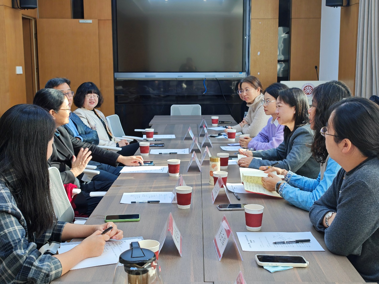 次日,调研组赴北京大学中文系学习调研,中文系党委书记贺桂梅、副院长宋亚云及相关骨干教师等出席交流。座谈聚焦于党建引领学院高质量发展、二级学院现代化治理体系建设、学科团队平台建设、拔尖创新人才培养的模式与成效、思政实践课程建设、数字化新形态教材编纂,以及新文科背景下中文专业与其他学科的交叉融合等议题。北京大学中国语言文学学科在学术研究和人才培养方面享有盛誉,其在学术前沿探索、拔尖人才培养方面的深厚积淀与创新实践,给予了调研组重要启示。
